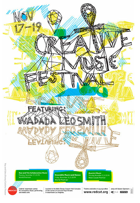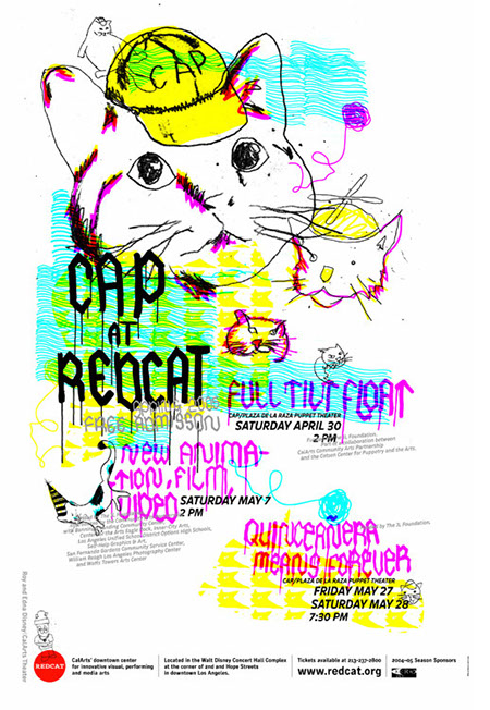 I designed two silkscreen posters for REDCATS for their events "CAP at REDCAT" and the "Creative Music Festival." Both posters received a Certificate of Typographic Excellence from the Type Director's Club annual awards of 2006 and a Merit in Graphic Design from the Art Director's anual awards of 2006.