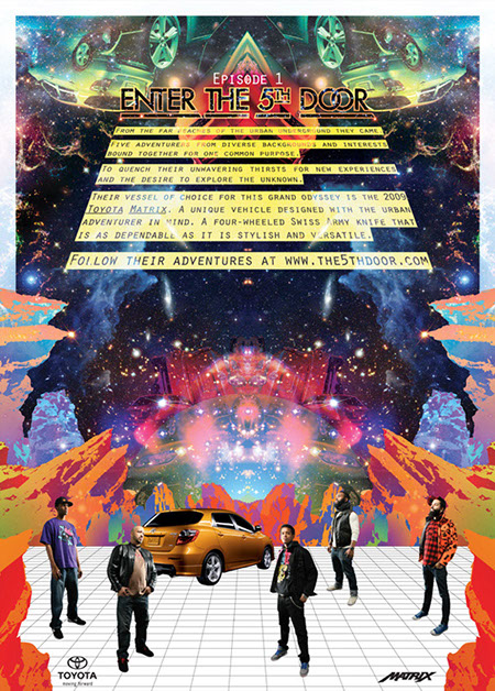 I worked with Toyota's advertising agency an couple of advertorial promoting the Toyota Matrix "5th Door" campaign that was aimed at millennials with interests in action sports, video games, and street fashion.